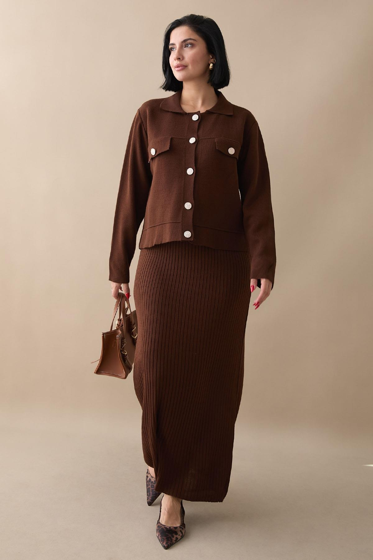 Ceketli Elbiseli Acı Kahve Triko Takım (MS00MX8753-8)