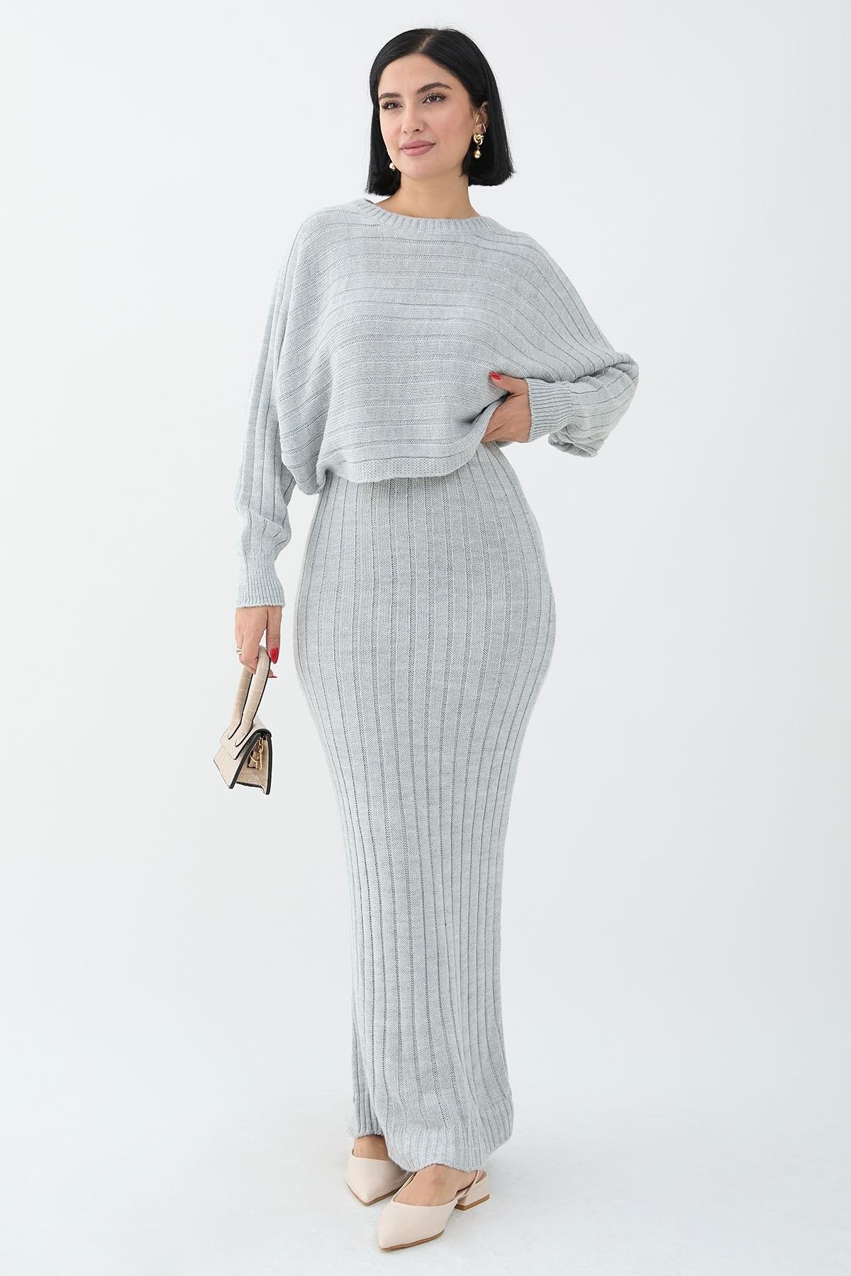 Elbiseli Kısa Kazak Gri Triko Takım (MS00NL4045-2)