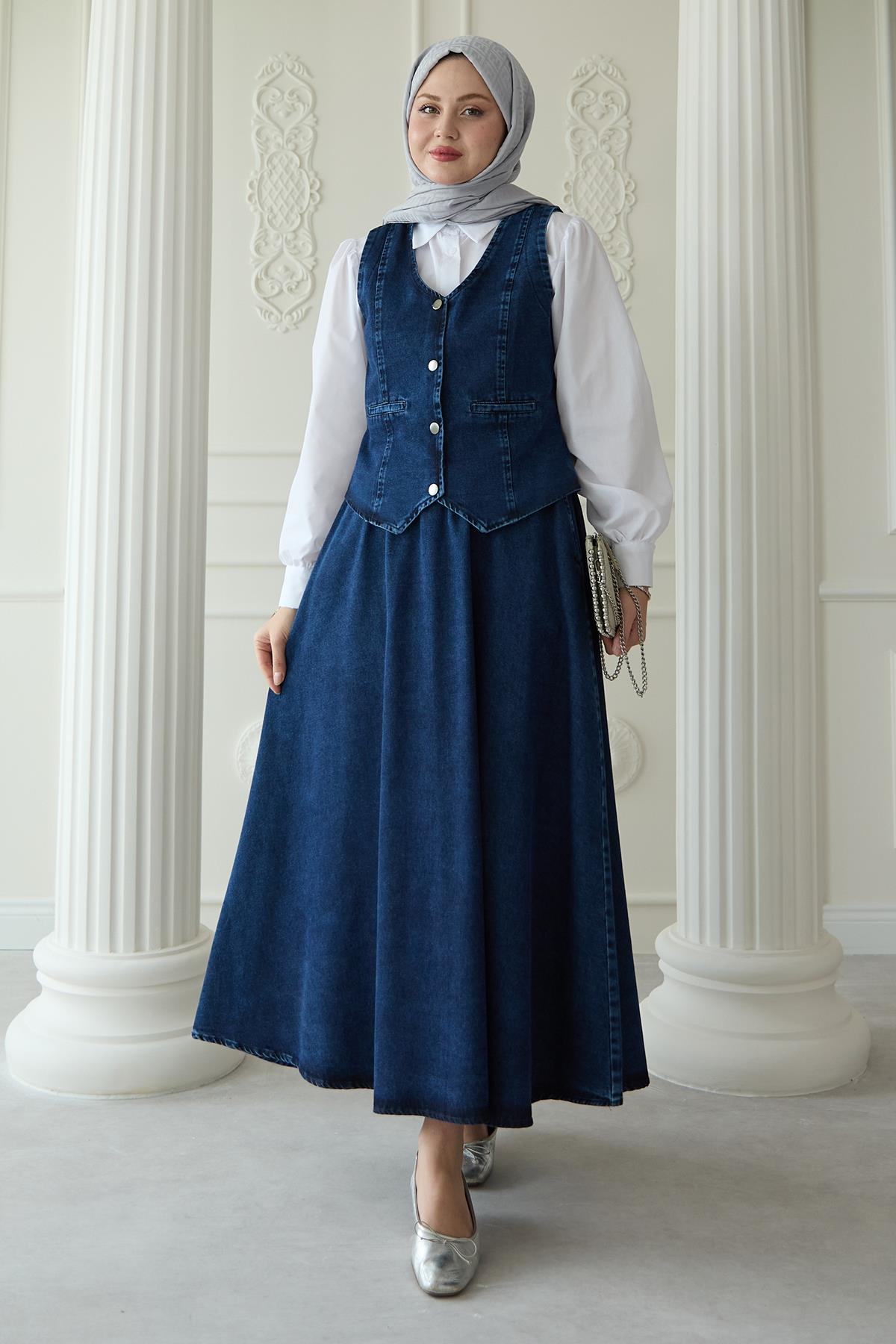Yelekli Etekli Mavi Üçlü Kot Takım (MS00AS857-1)