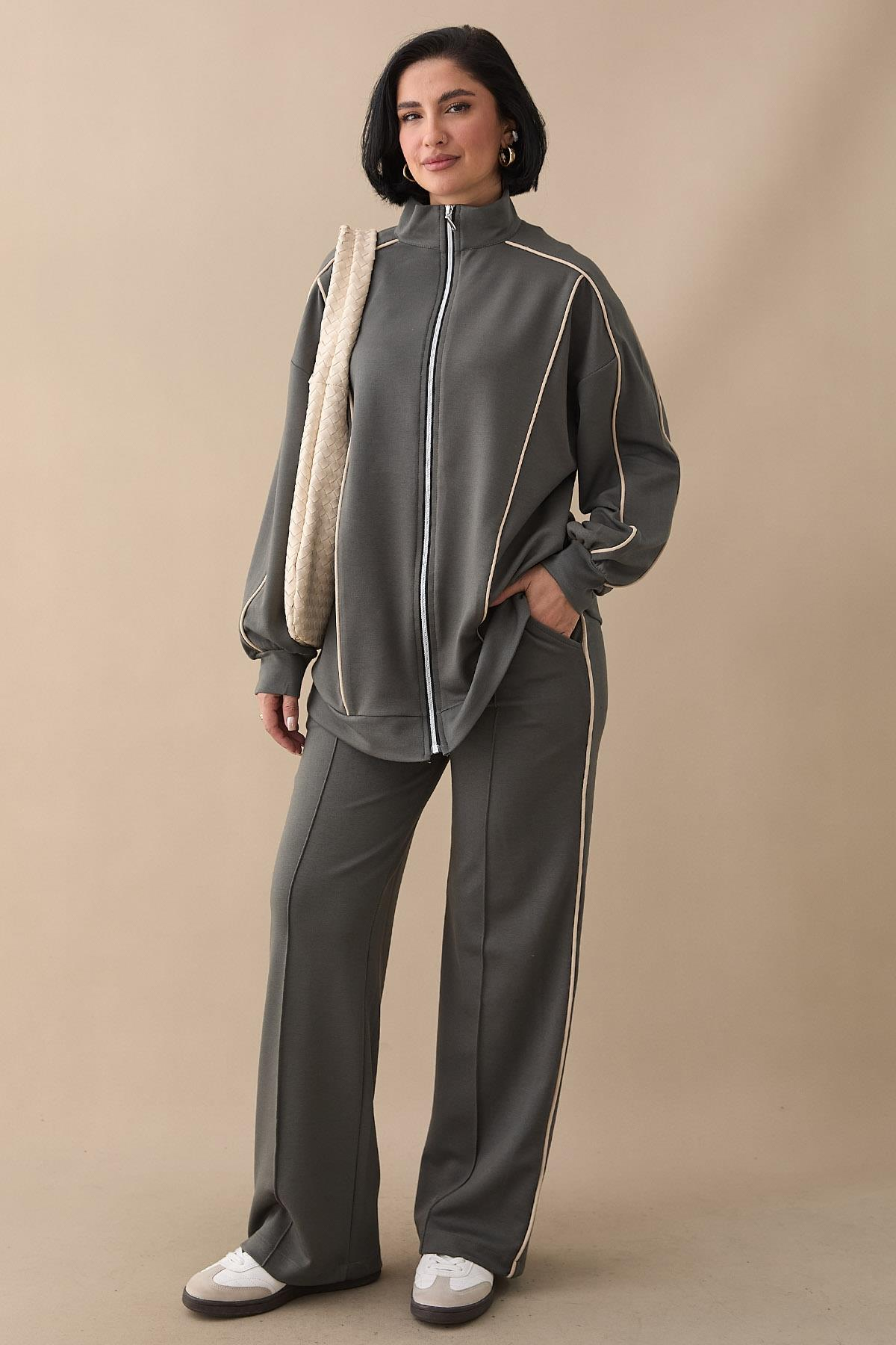 Çift Biyeli Fermuarlı Haki İkili Takım