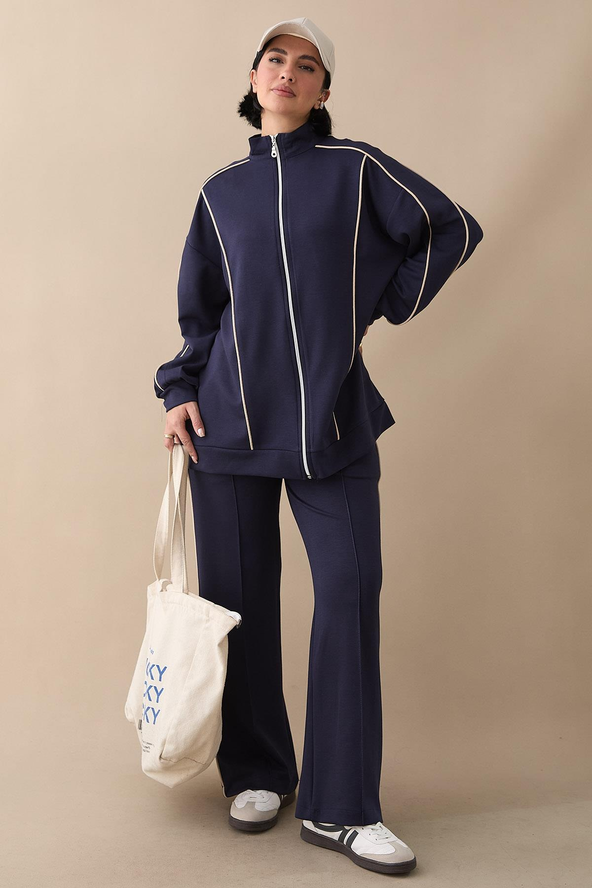 Çift Biyeli Fermuarlı Lacivert İkili Takım