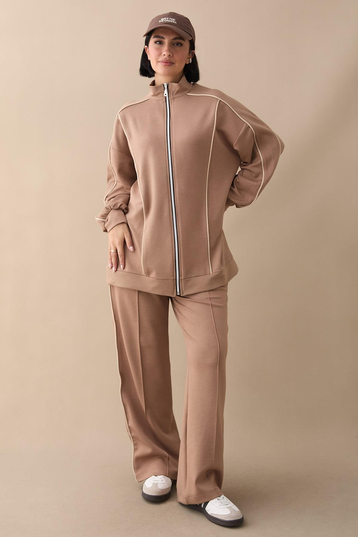 Çift Biyeli Fermuarlı Sütlü Kahve İkili Takım