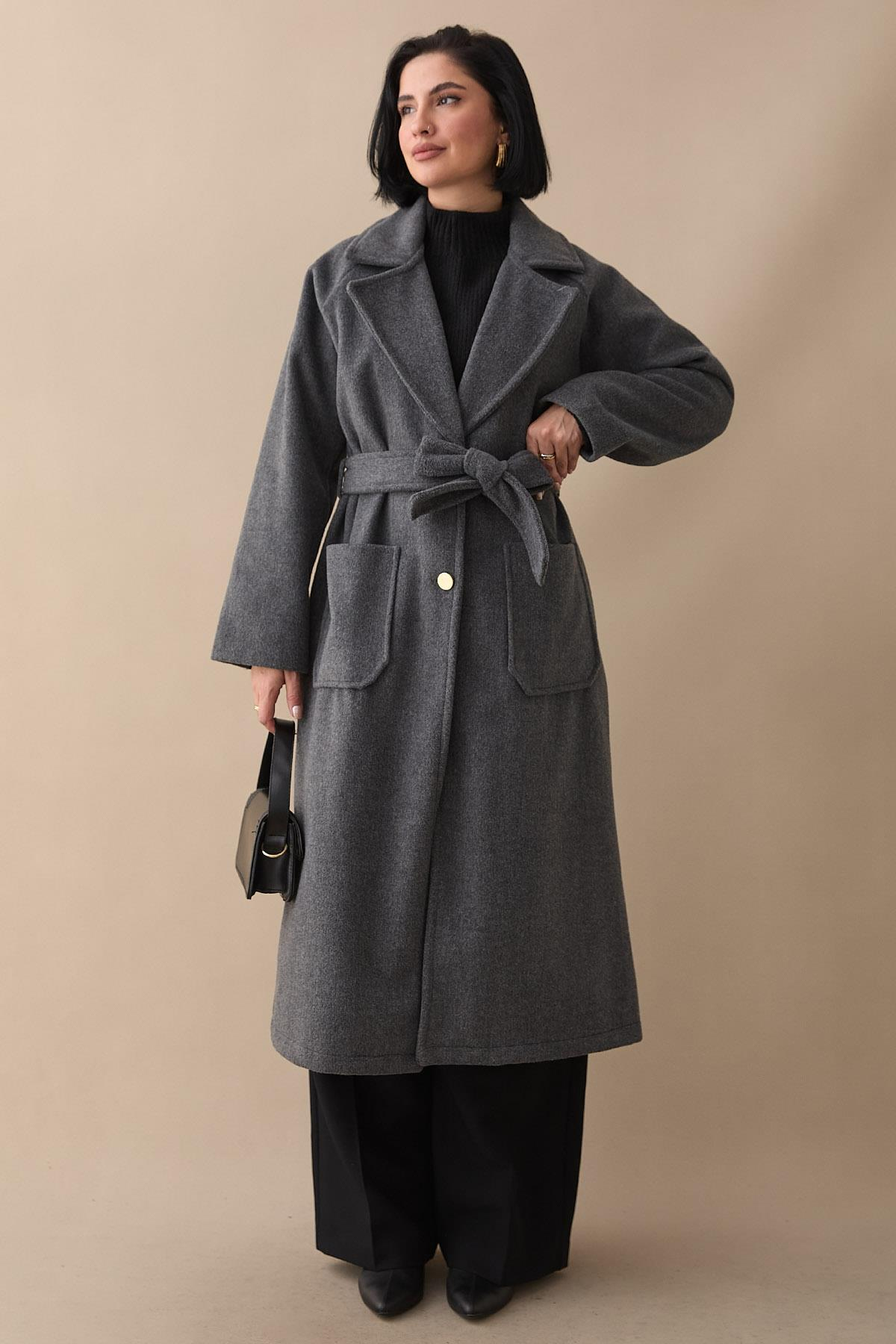 Çift Düğmeli Cepli Kuşaklı Antrasit Kaşe Kaban (MS00PLN2014-2)