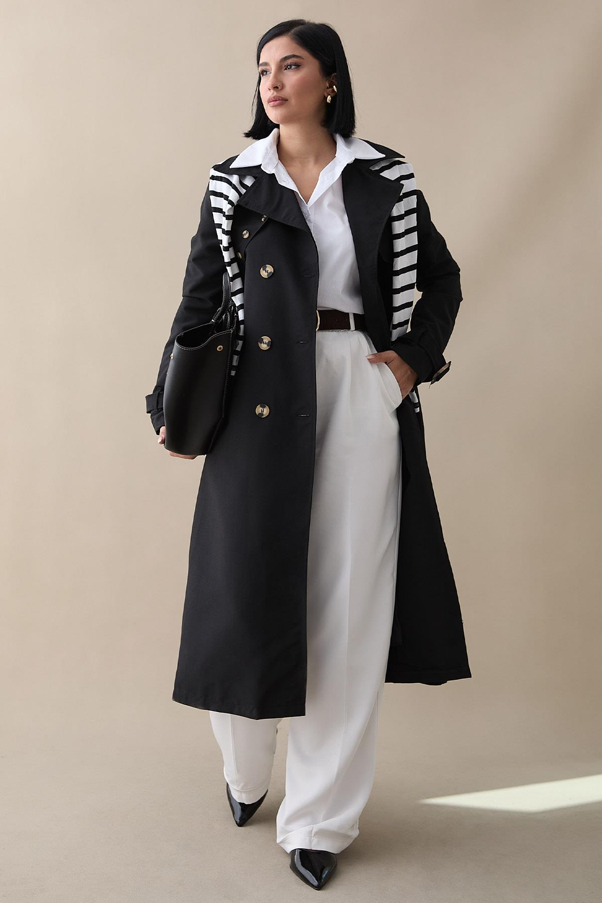 Arkası Zincir Detay Siyah Trençkot (MS00ALT02002-1)