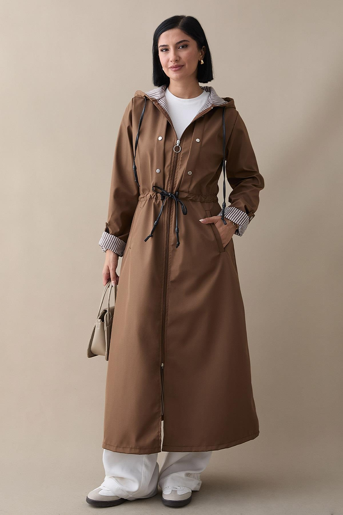 Çakımlı Çizgili Desen Uzun Taba Trençkot (MS00ANT11023-6)