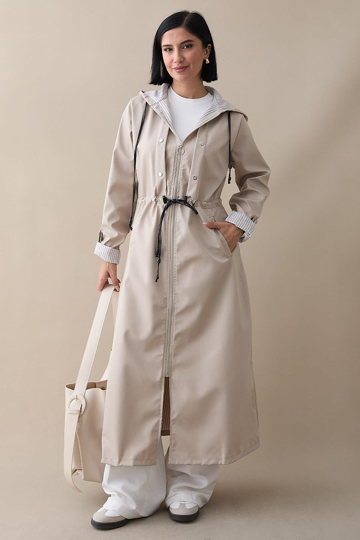 Çakımlı Çizgili Desen Uzun Taş Trençkot (MS00ANT11023-10)