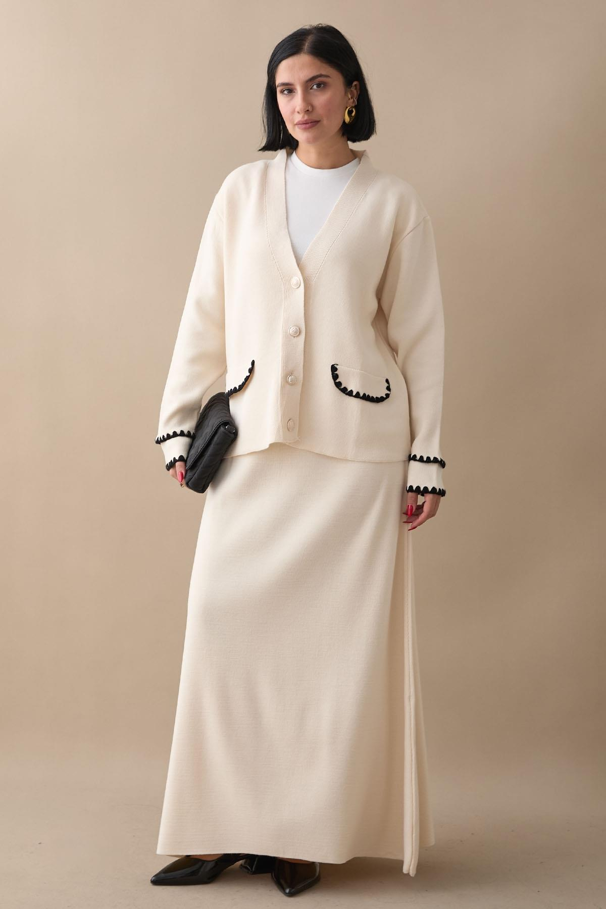 Sewed Detail Skirt Cream Knit Set (MS00ES24204-3)