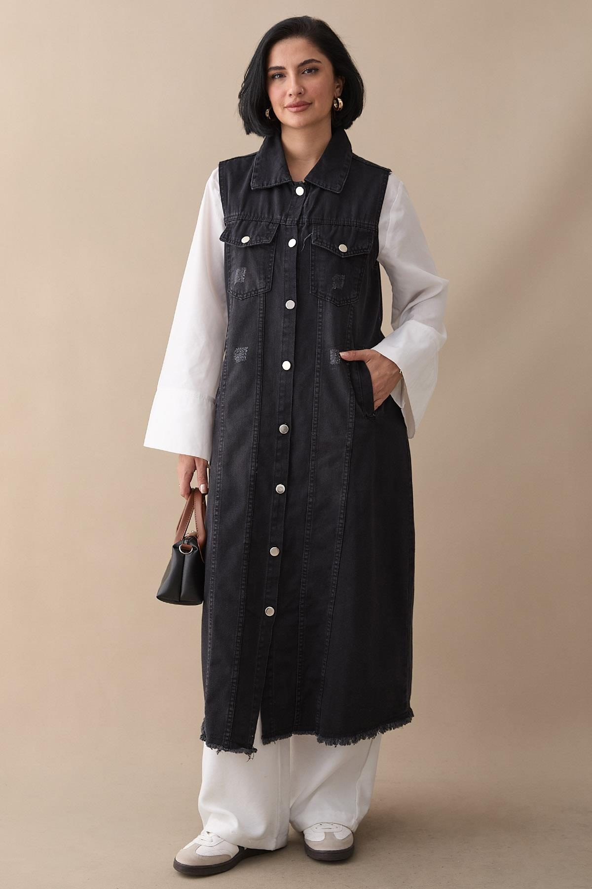 Eskitme Detay Siyah Kot Yelek (MS00AN8028-1)