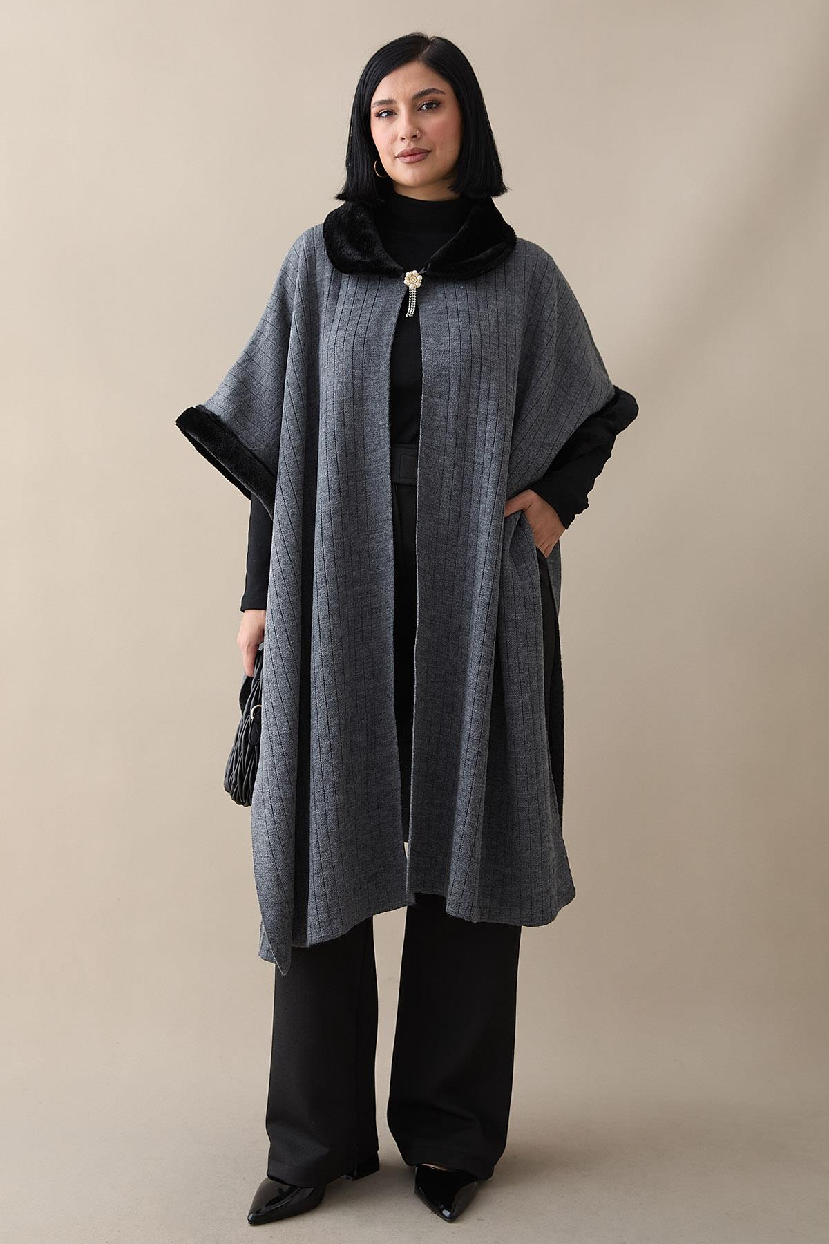 Kürk Ve Broş Detaylı Antrasit Panço (MS00CNR2004-2)