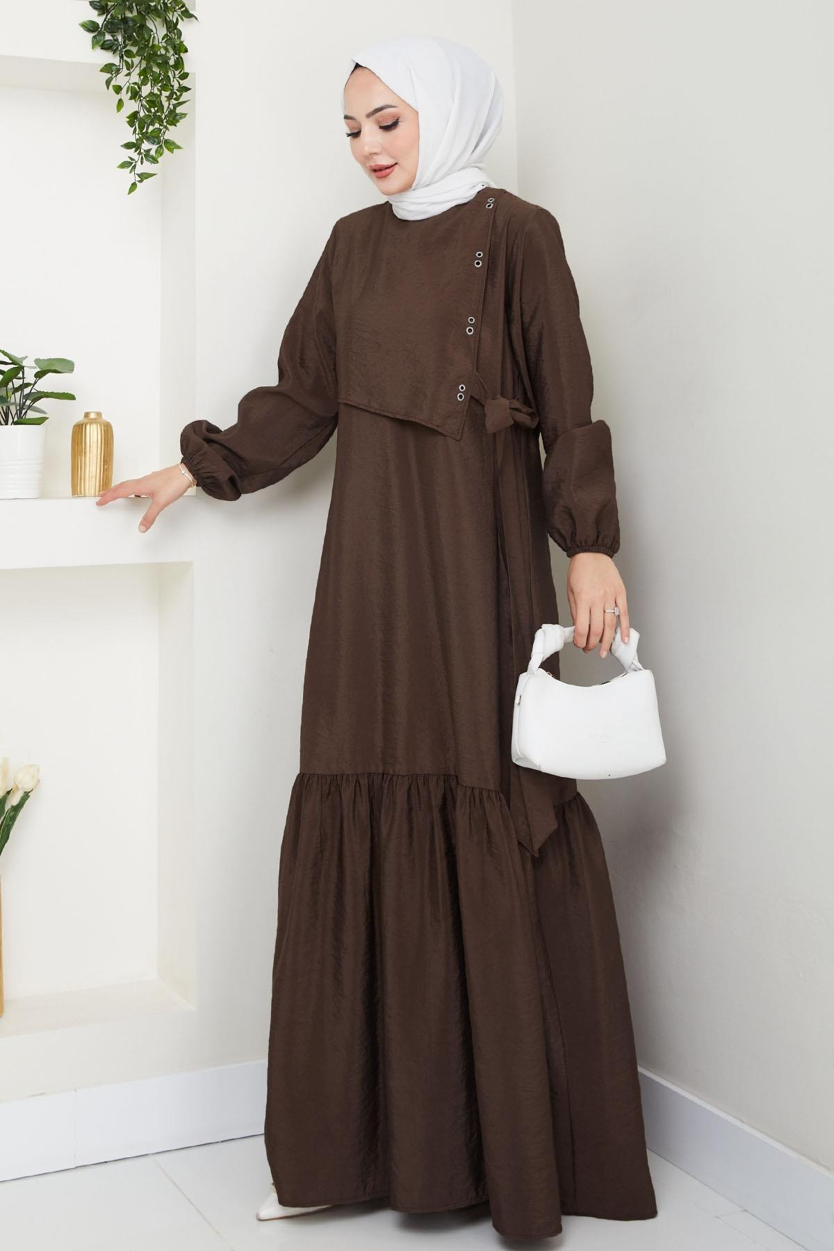 Kuş Gözü Detaylı Modal Acı Kahverengi Elbise