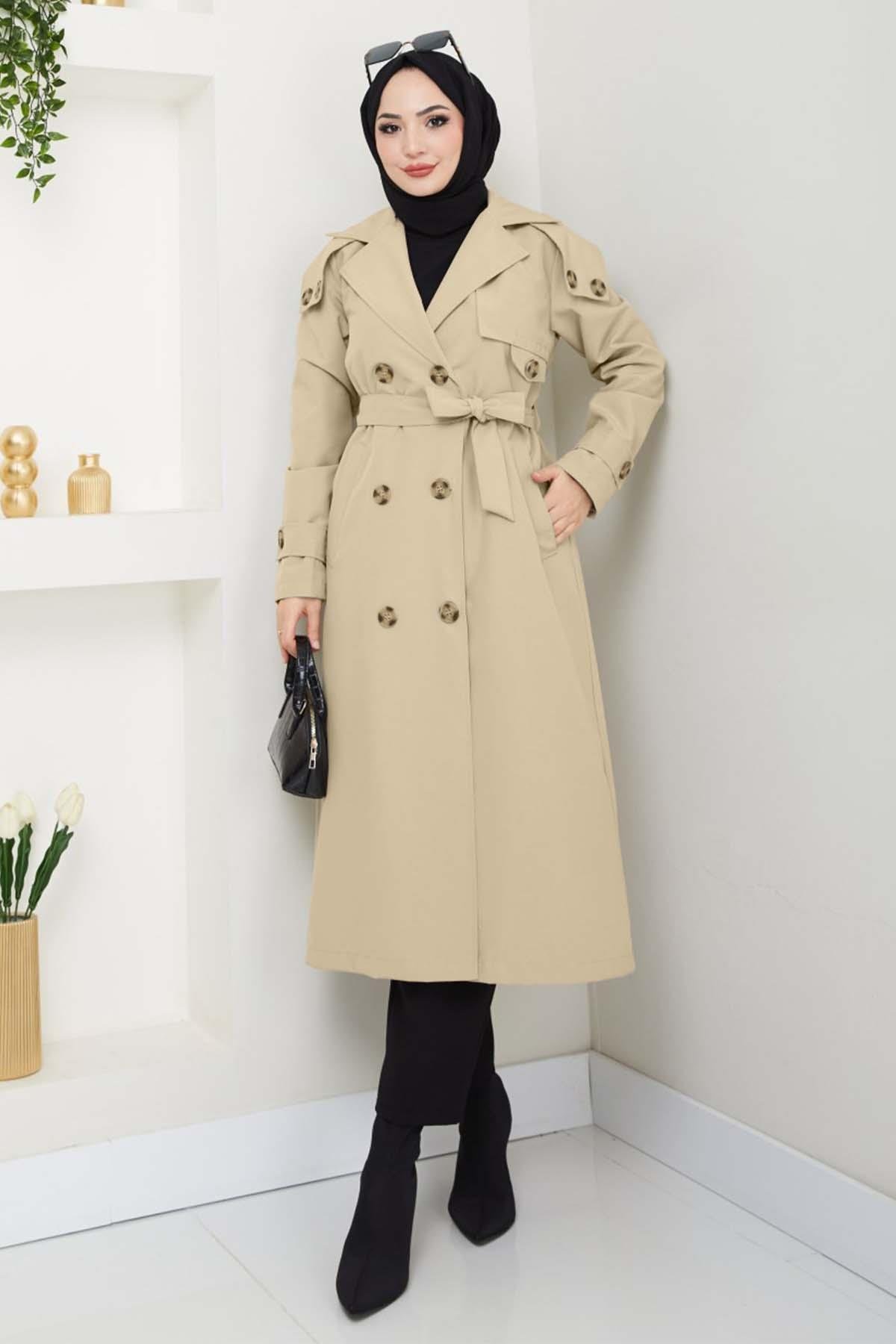 Omuzları Apolet Detaylı Astarlı Açık Bej Trençkot (MS00GM043-8)