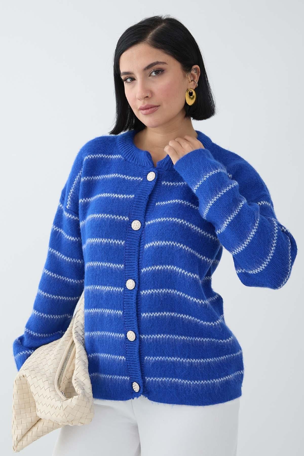 İnce Şeritli Saks Mavisi Triko Hırka (MS00SDN150-2)