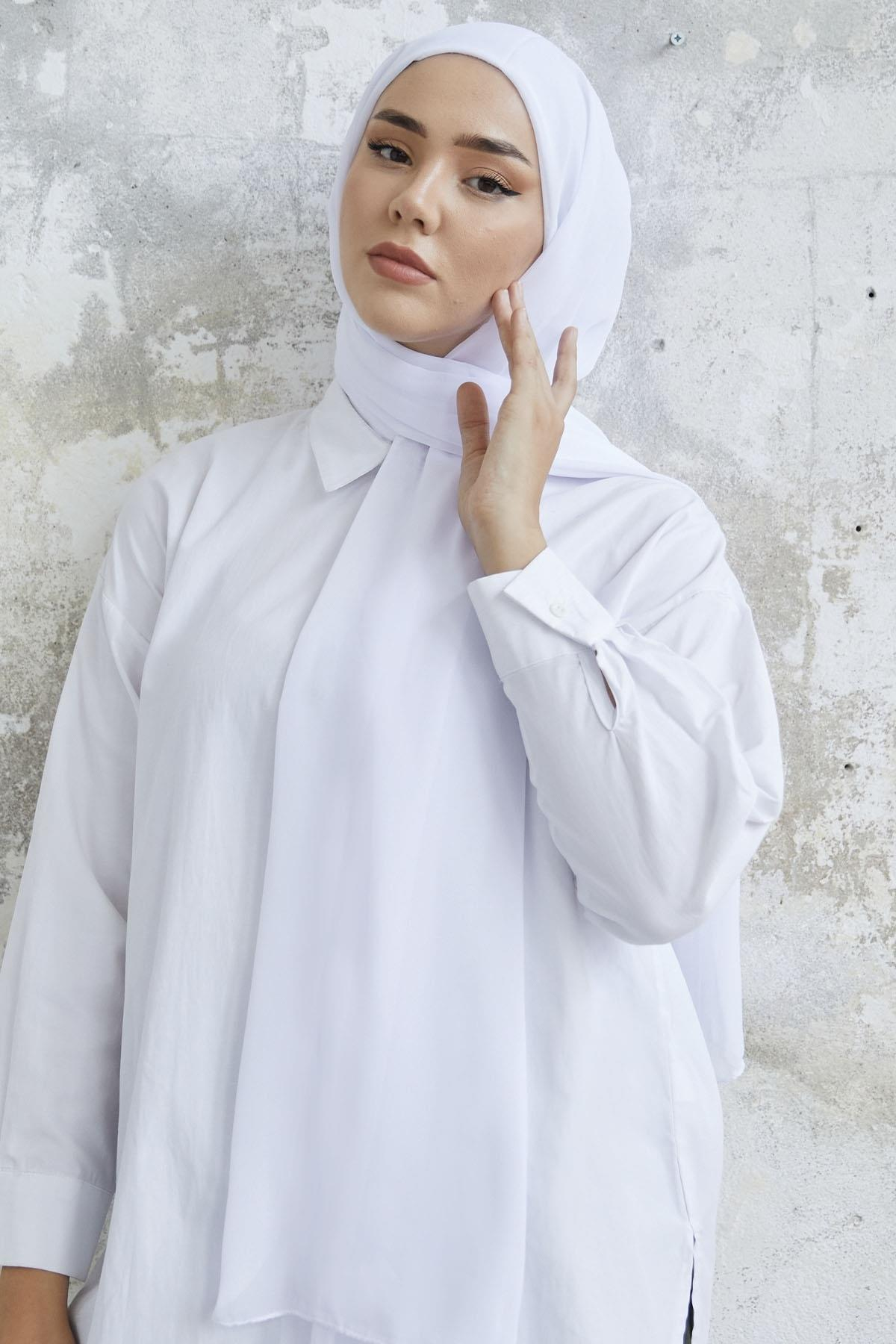 Kendinden Boneli Beyaz Şifon Şal (MS00LY1907-8)