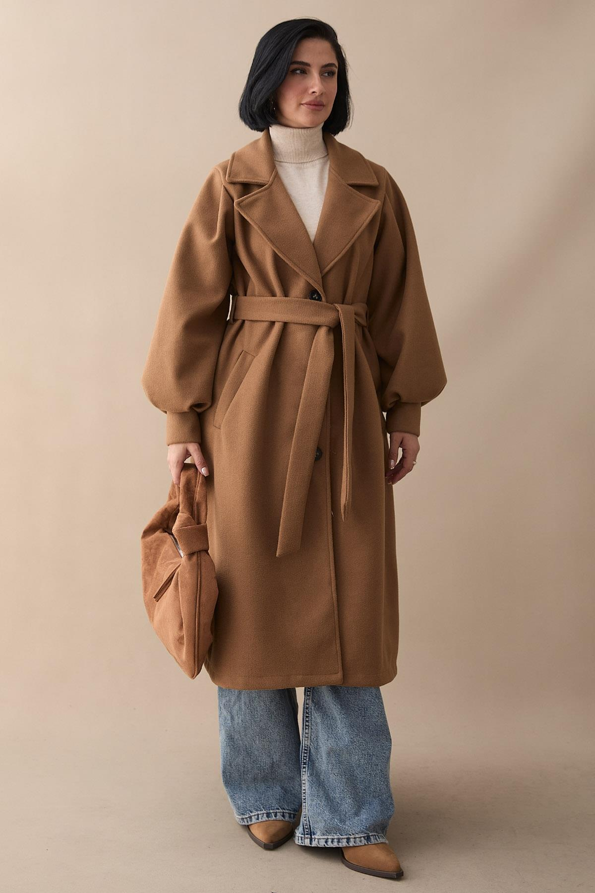 Kruvaze Balon Kol Kuşaklı Taba Kaşe Kaban (MS00PLN2001-8)