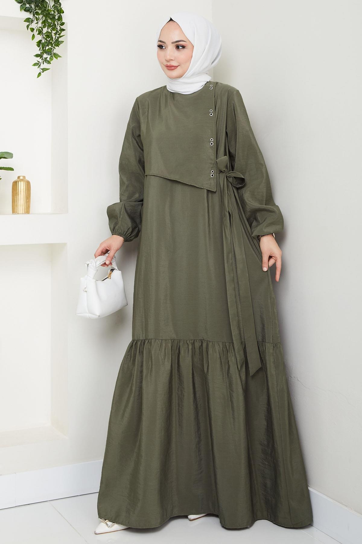 Kuş Gözü Detaylı Modal Haki Elbise (MS00MLT4056-2)