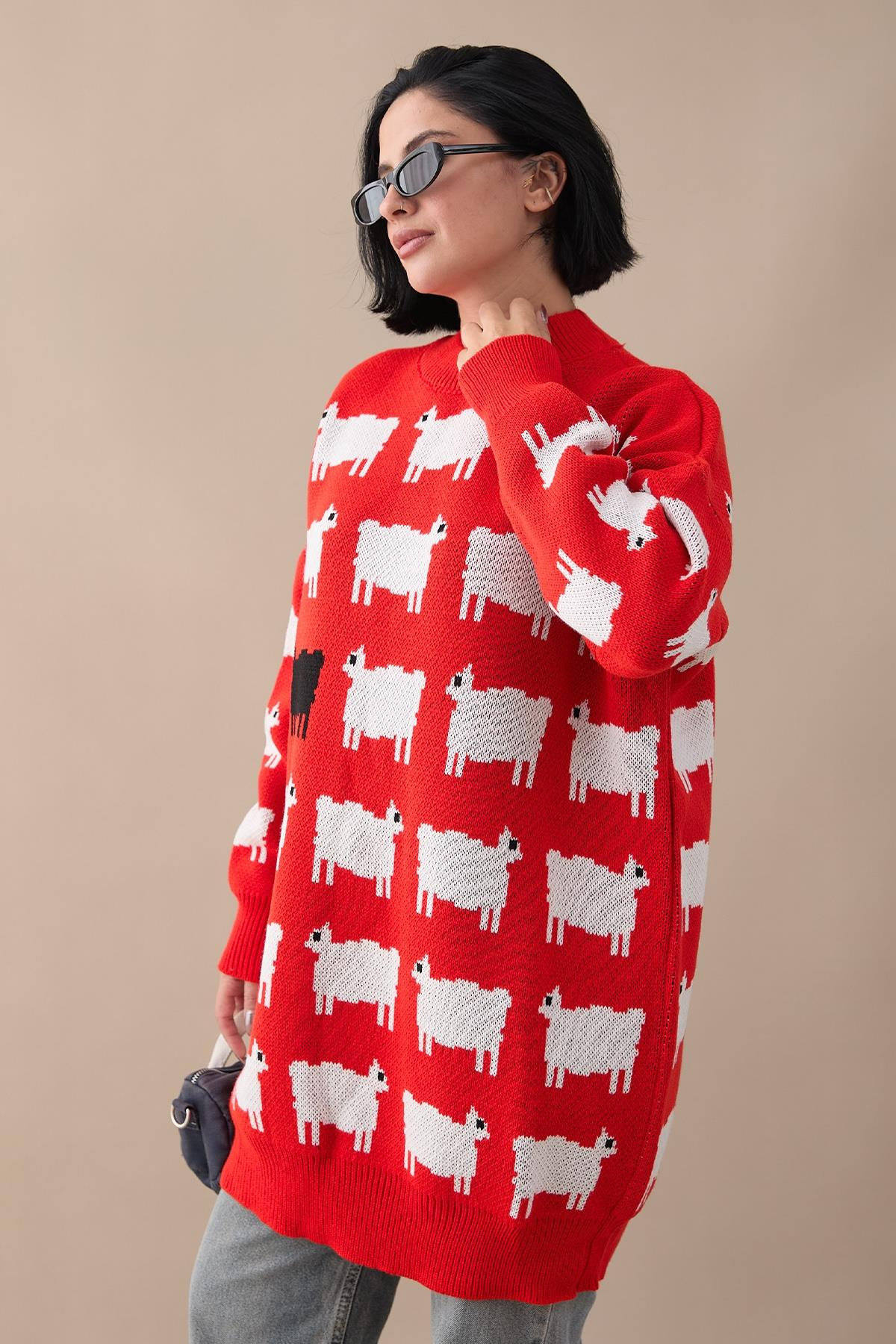 Kuzu Desen Triko Kazak - Kırmızı (MS00RF091-1)