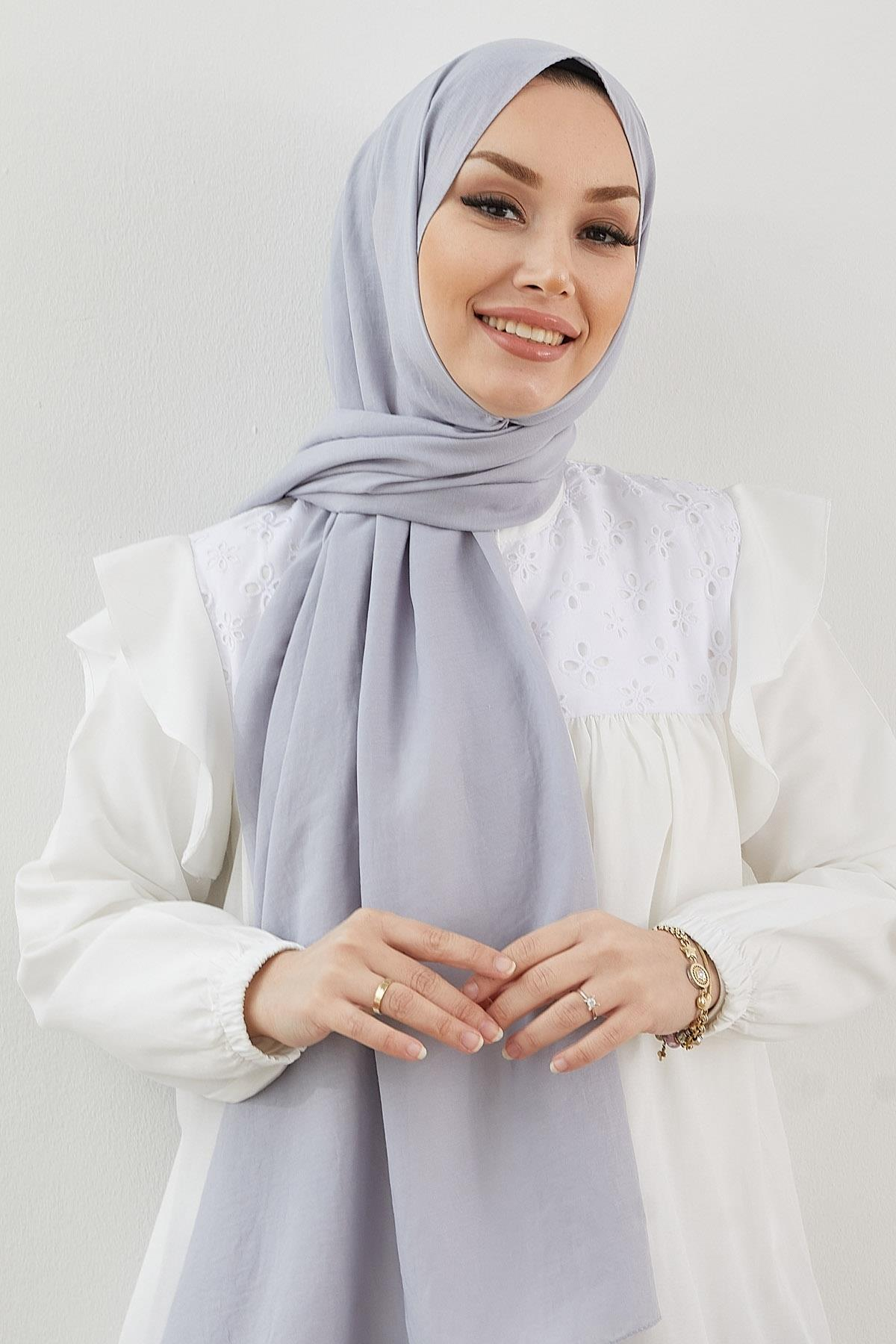 Pamuk Kraş Tesettür Şal - Gri (MS00LY0912-6)