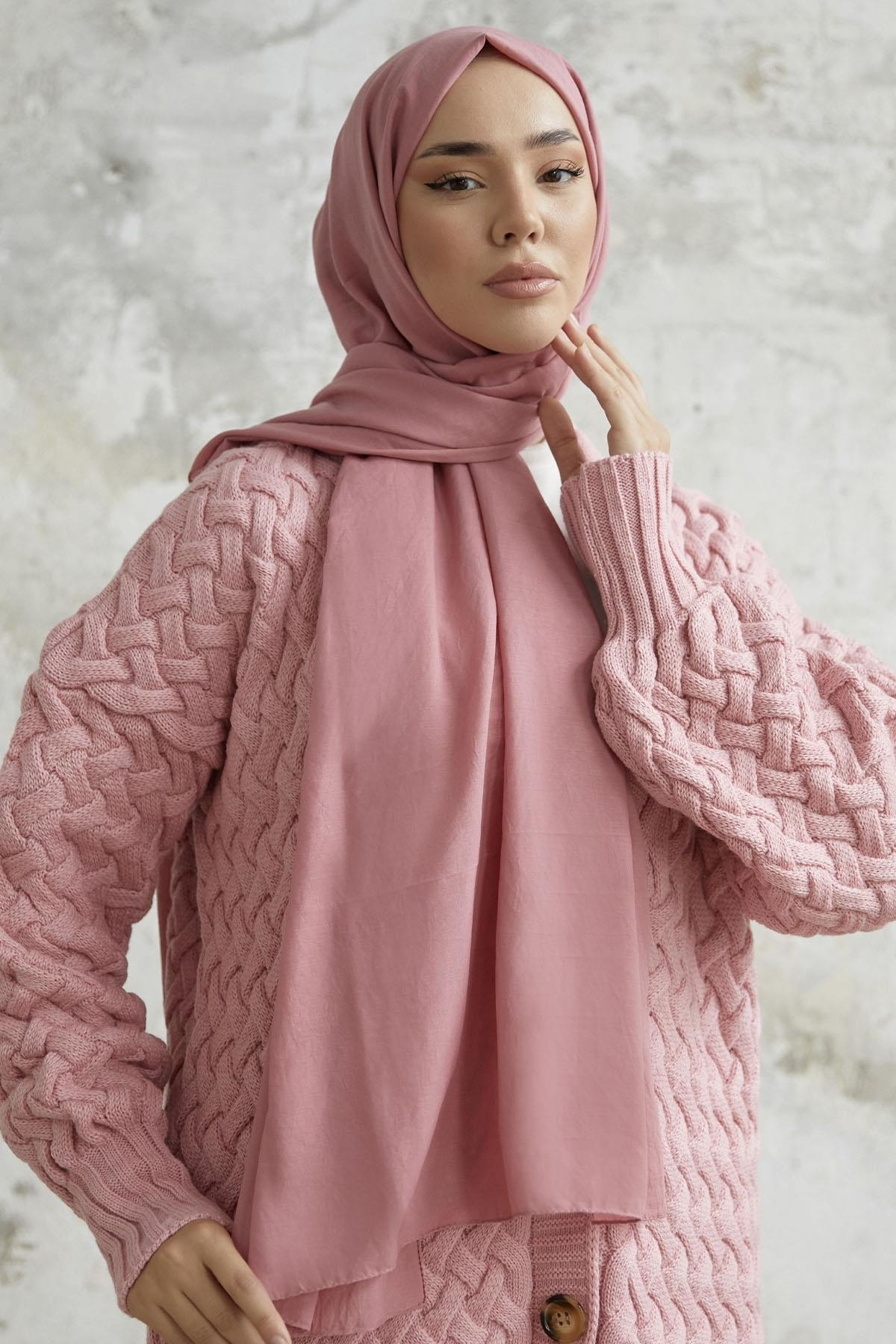Pamuk Kraş Tesettür Şal - Pembe
