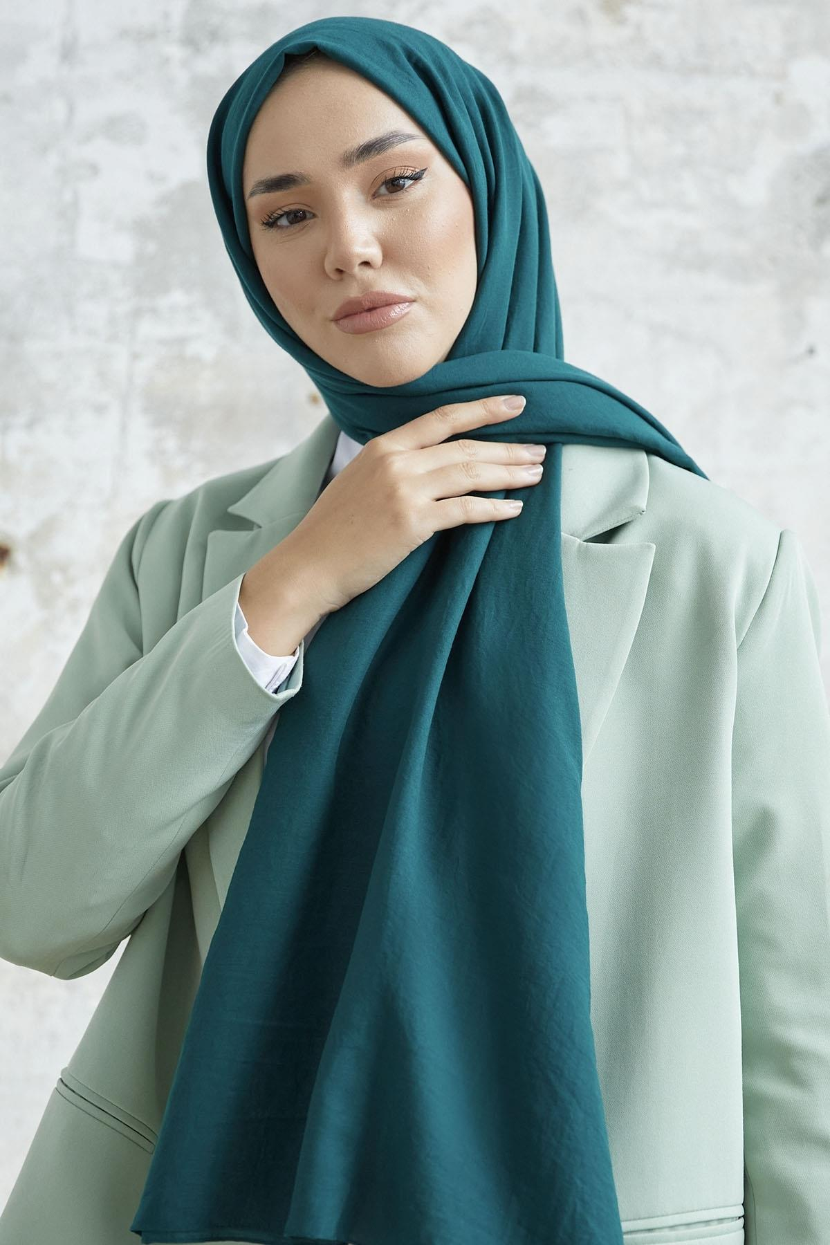 Pamuk Kraş Tesettür Şal - Zümrüt Yeşili