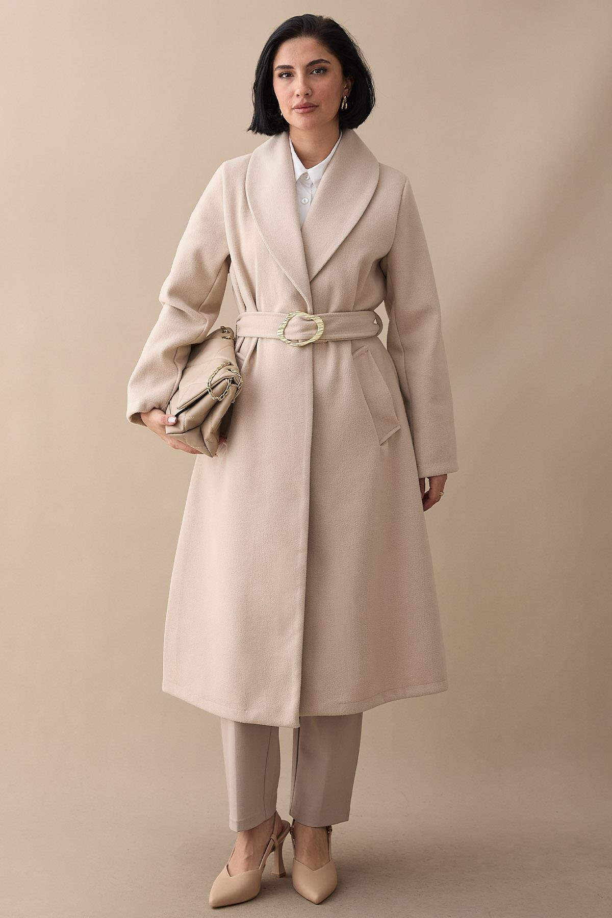 Şal Yaka Gold Kemerli Taş Kaşe Kaban (MS00PLN2003-3)