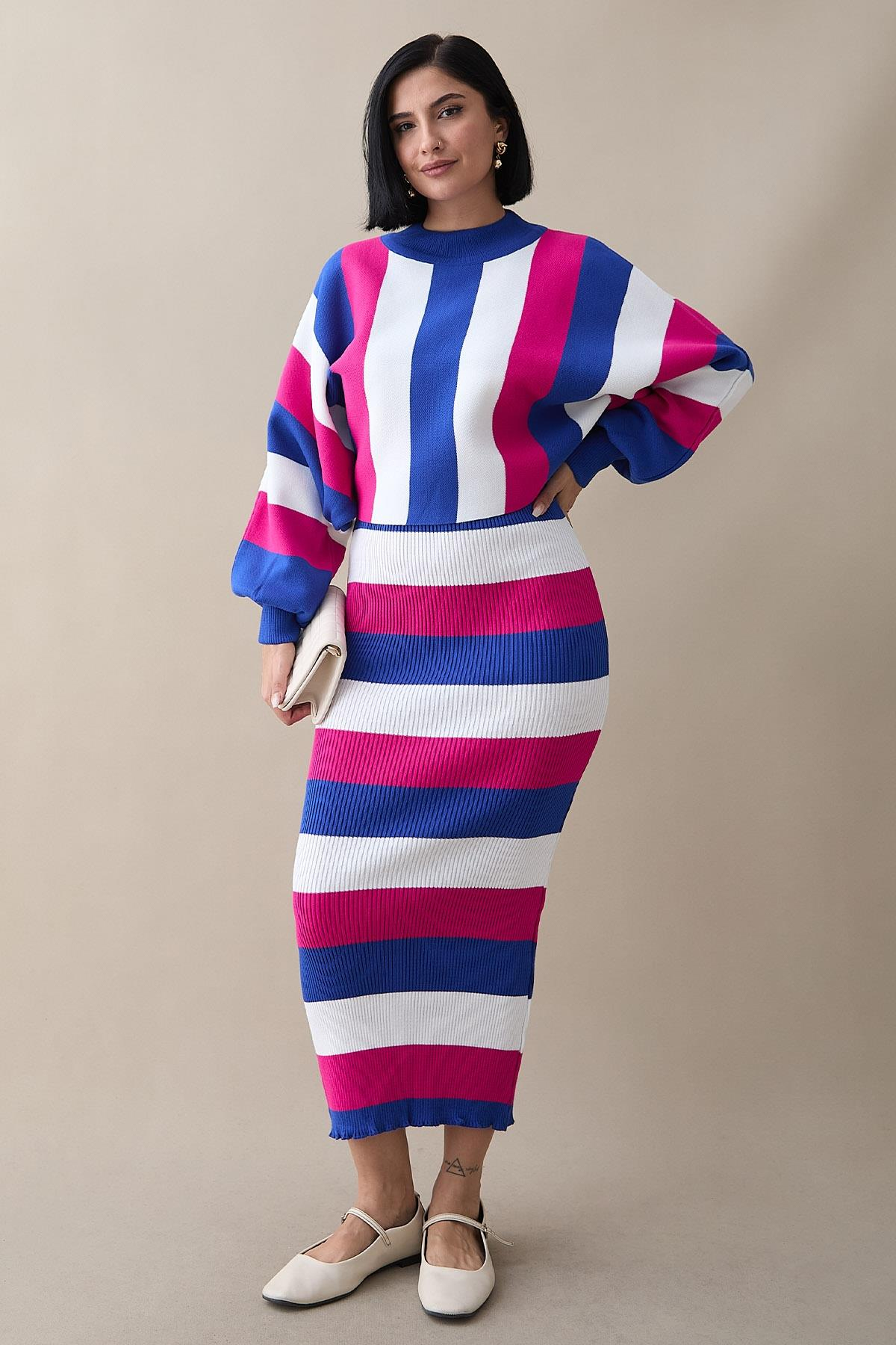 Yarasa Kol Fuşya Triko Takım (MS00SDN207-4)
